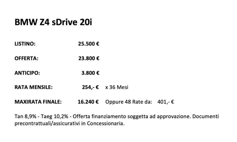 Splendida Bmw Z4 sdrive 20i, Uniproprietario, pari al nuovo, con chilometri percorsi garantiti da libretto service e fatture officina BMW.